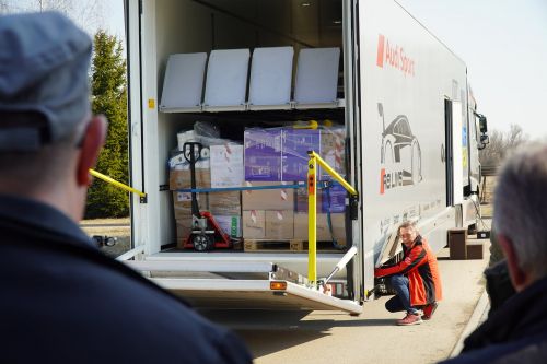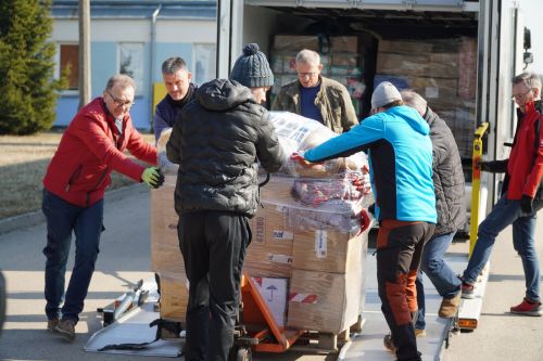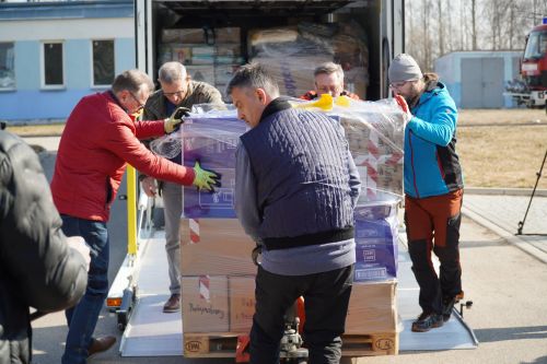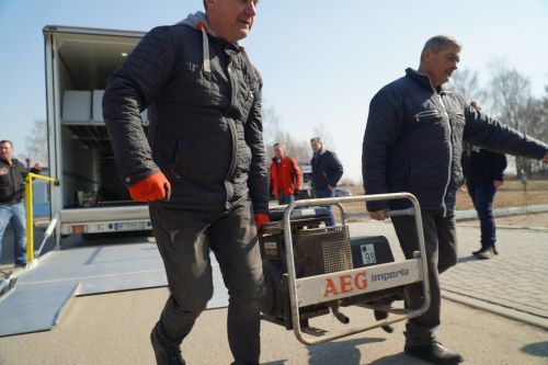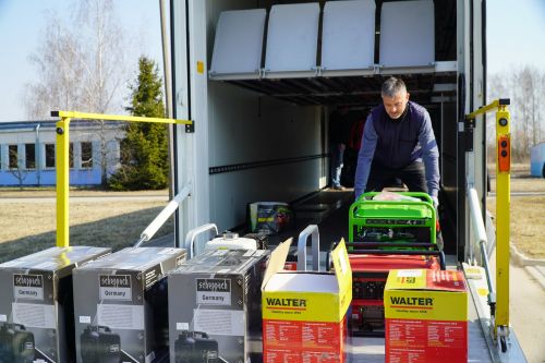 Tygodniowa zbiórka, 12 godzin pakowania, ponad 1000 km w trasie - dary z Kwerfurtu dotarły do Giżycka i po krótkim przystanku ruszą do Dubna. Delegacja z Kwerfurtu, na czele z burmistrzem Andreasem Nette, w 40 tonowym tirze przywiozła m.in. 16 agregatów prądotwórczych, żywność długoterminową, jedzenie dla dzieci, śpiwory, środki higieniczne. Wszystko to w krótkim czasie udało się uzbierać dzięki hojności mieszkańców naszego miasta partnerskiego Kwerfurtu.