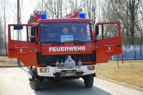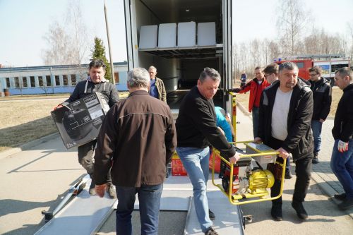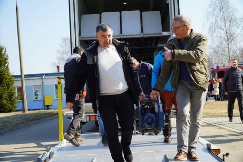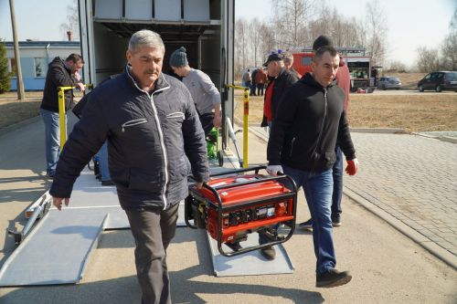 Tamtejsza straż pożarna przekazała również jeden ze swoich wozów strażackich i hełmy. Sprawny rozładunek transportu umożliwiło zaangażowanie niezastąpionych wolontariuszy ze Związku Ukraińców w Polsce Zup Koło W Giżycku   Gości z Niemiec przywitali Zastępca Burmistrza Giżycka Cezary Piórkowski, Przewodnicząca Rady Powiatu Monika Łępicka-Gij, Przewodniczący Rady Miejskiej w Giżycku dr Robert Kempa. Transport do Dubna zaplanowano na poniedziałek, 21 marca.